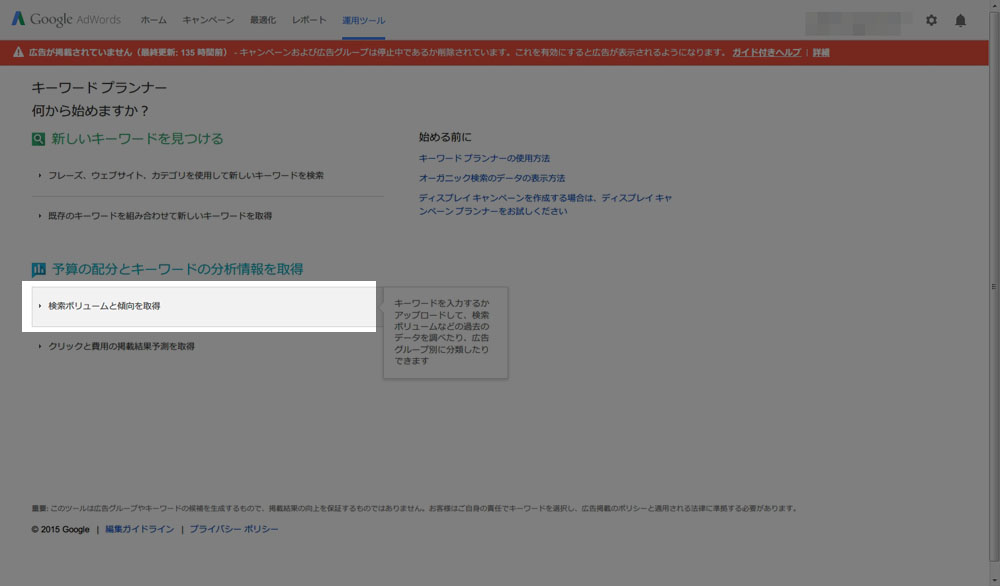 2016年の夏あたりにキーワードプランナーの仕様が変更され、広告を出稿していないアカウントの場合は、